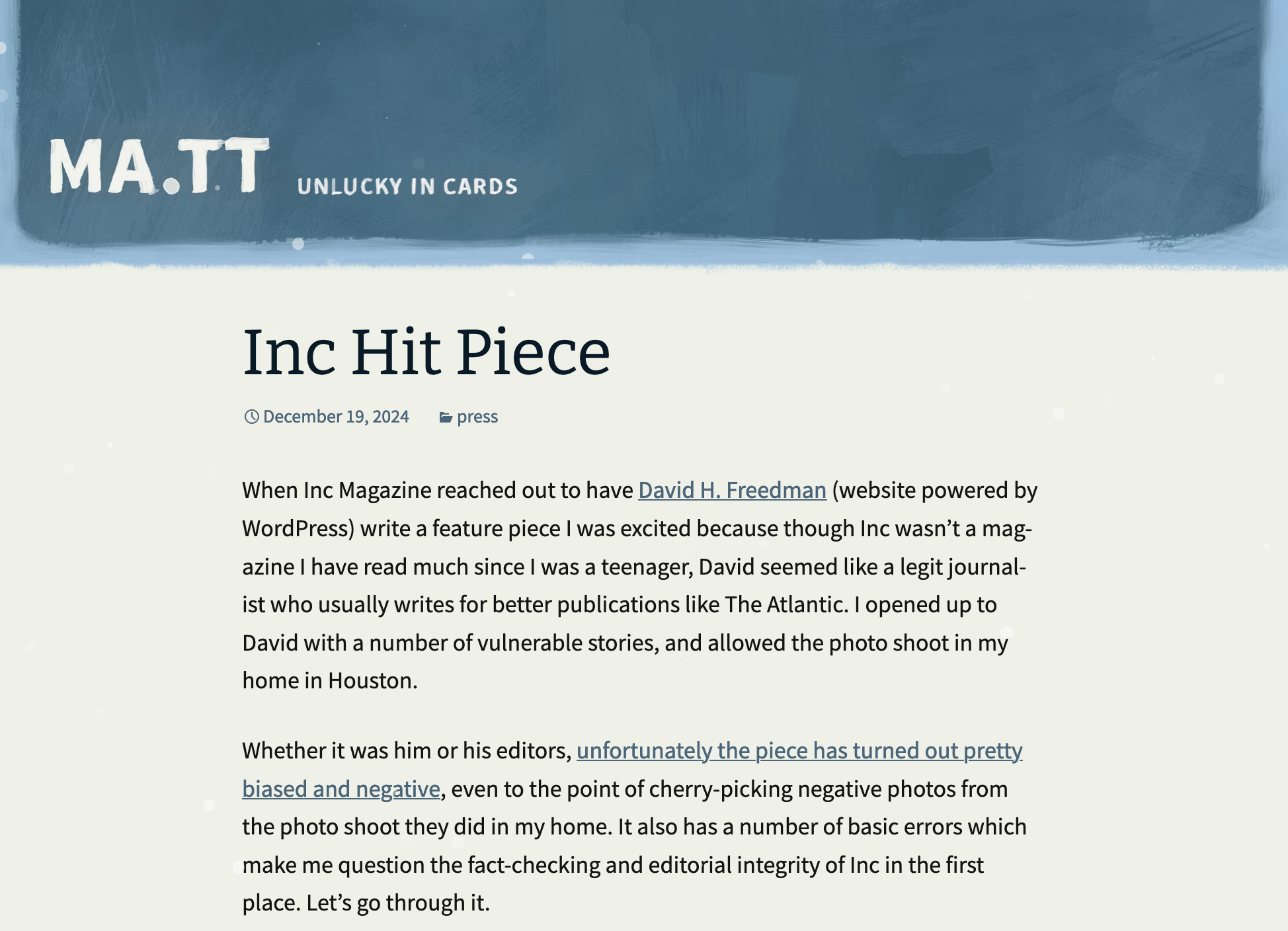 Inc. magazine published a story on Matt Mullenweg VS WP Engine, Matt fight back calling it a hit piece